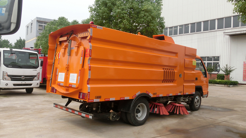 產(chǎn)品功能特點(diǎn)1、采用吸掃結(jié)合的方式收集垃圾,濕式除塵、電液控制,液壓傾翻卸料的作業(yè)方式對(duì)路面進(jìn)行清掃作業(yè)。2、采用副發(fā)動(dòng)機(jī)專門驅(qū)動(dòng)風(fēng)機(jī)和液壓系統(tǒng),保證行駛過程中能繼續(xù)工作,保證清掃過程的連續(xù)性。 3、采用“中置四盤刷+后置吸嘴”的結(jié)構(gòu)布置,便于清掃裝置與吸嘴的調(diào)整和維護(hù),轉(zhuǎn)場(chǎng)時(shí)整車通過性好。 4、副發(fā)動(dòng)機(jī)與風(fēng)機(jī)之間的傳動(dòng)設(shè)置設(shè)有自動(dòng)離合器,可保證副發(fā)動(dòng)機(jī)空載起動(dòng)和停機(jī)時(shí)與風(fēng)機(jī)的自動(dòng)脫離,降低對(duì)副發(fā)動(dòng)機(jī)的沖擊,提高了副發(fā)動(dòng)機(jī)的工作可靠性和使用壽命。 5、掃盤有遇障避讓保護(hù)功能和復(fù)位功能,遇到障礙物后回縮,越過障礙物后復(fù)位。 6、根據(jù)不同清掃工況,在不增加副機(jī)油門的情況下,實(shí)現(xiàn)掃盤高中低三檔調(diào)速,即能保證在各種污染狀況下都有良好的清掃效果,同時(shí)節(jié)省油耗以及刷毛的損耗。 7、采用可隨路面自動(dòng)找平的全浮動(dòng)式吸嘴,吸塵效果好,使用壽命長(zhǎng)。 8、進(jìn)口液壓閥組,能保證整車的液壓動(dòng)作的穩(wěn)定性和流暢性。 9、進(jìn)口液壓馬達(dá),能保證掃盤的工作穩(wěn)定性,使用壽命長(zhǎng)。 10、進(jìn)口原料制成的外翻式吸塵管,有效防止吸塵管被劃破、凍裂,增加使用壽命。 11、精密無縫冷彎液壓油管,內(nèi)壁無氧化雜質(zhì),保證液壓油路清潔,不堵閥。 12、掃盤刷臂內(nèi)使用高性能工程塑料隔套,耐磨性好,免打黃油免維護(hù),節(jié)省人力物力。 13、不銹鋼水箱、垃圾箱,可抗一般性腐蝕,增加箱體的使用壽命。 14、超寬后門且大于90度的開啟角度,更易于傾倒垃圾,清理垃圾箱。 15、垃圾箱傾翻角度大于48度,易于傾倒垃圾。 16、可加裝前沖、后灑、噴霧、自潔卷盤、作業(yè)監(jiān)控系統(tǒng)、輔助吸管裝置、推雪鏟等。