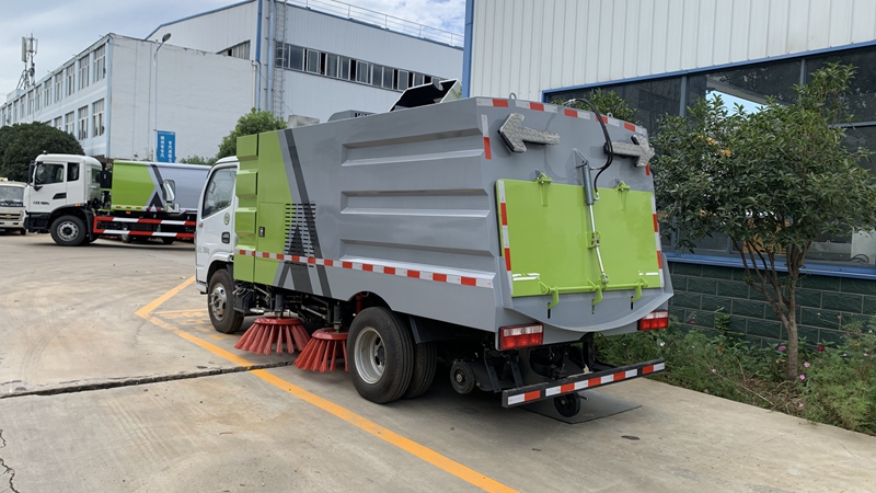 1、采用吸掃結(jié)合的方式收集垃圾,濕式除塵、電液控制,液壓傾翻卸料的作業(yè)方式對(duì)路面進(jìn)行清掃作業(yè)。