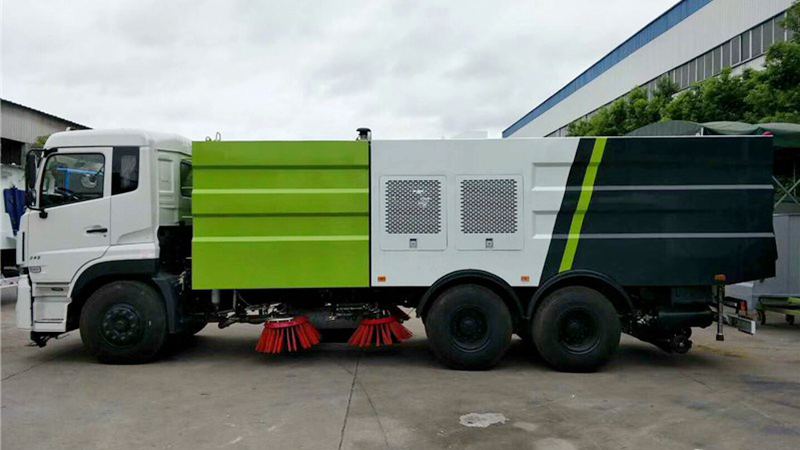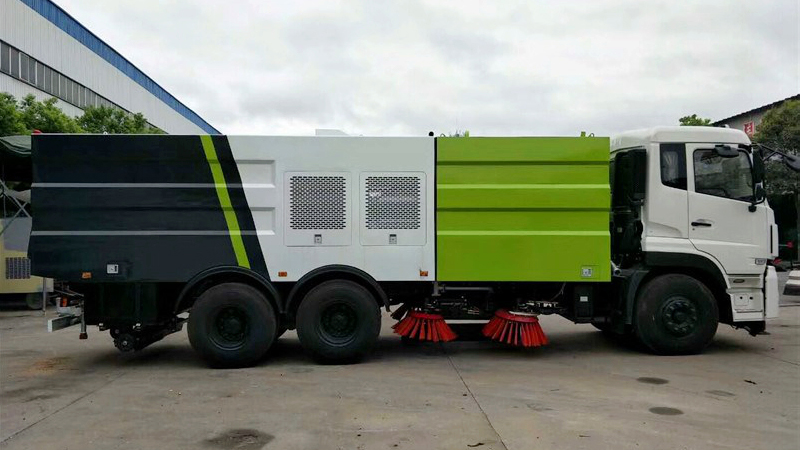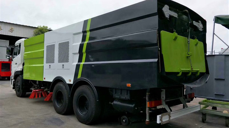 1、采用吸掃結(jié)合的方式收集垃圾,濕式除塵、電液控制,液壓傾翻卸料的作業(yè)方式對路面進行清掃作業(yè)。